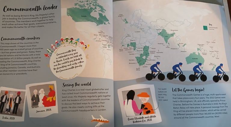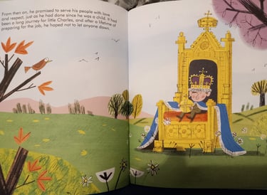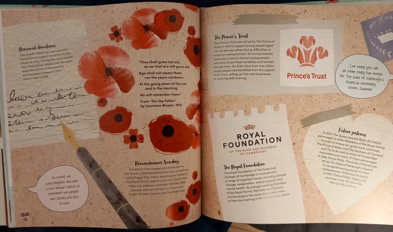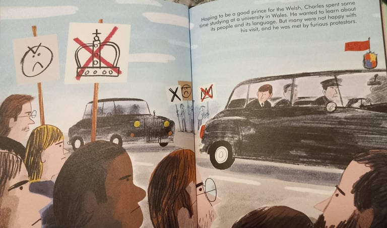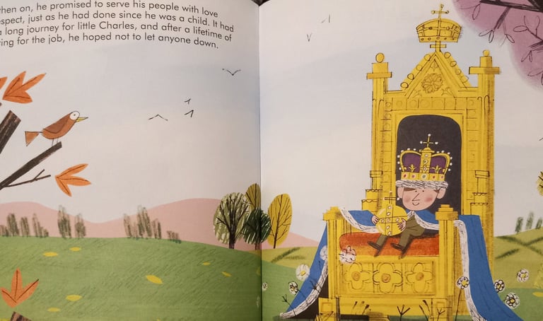 In King Charles III by Andrea Mills, the myth of royal charity dominates. Children learn about Charles’s “wonderful idea” to set up the Prince’s Trust using his “own money,” ignoring the reality of donor funding and celebrity endorsement.