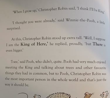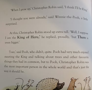 The irony goes unexamined when Christopher Robin declares, “When I grow up… I think I’ll be King.”